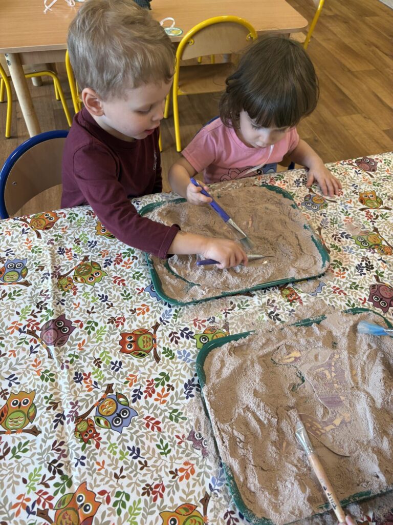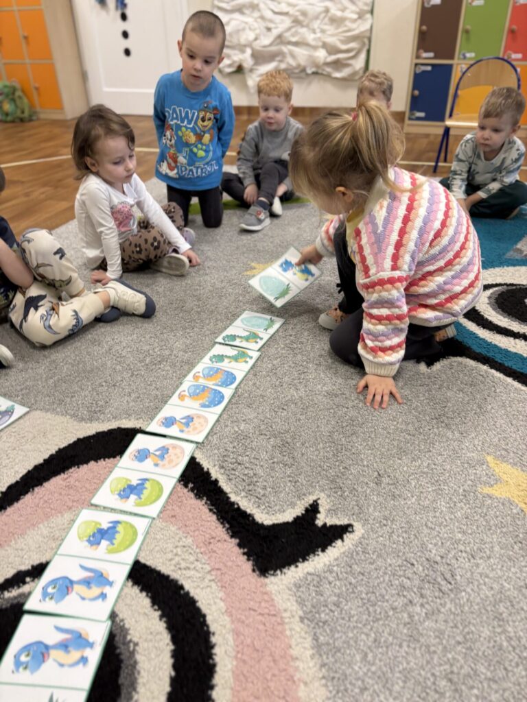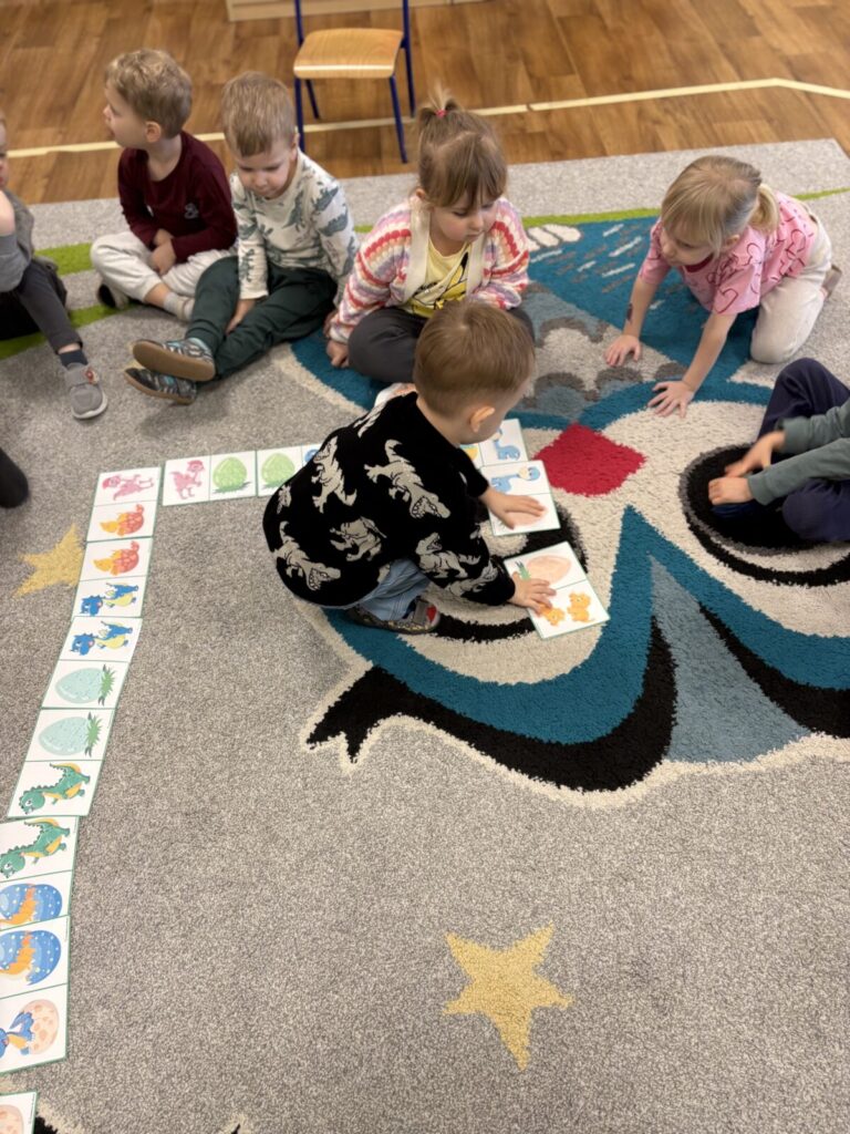 Dzieci poznawały prehistoryczny świat, oglądały modele dinozaurów, słuchały ciekawostek i brały udział w tematycznych zabawach ruchowych.