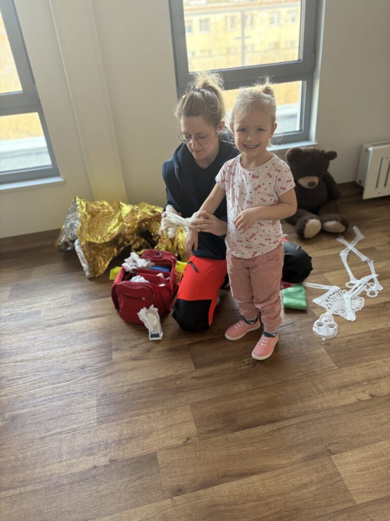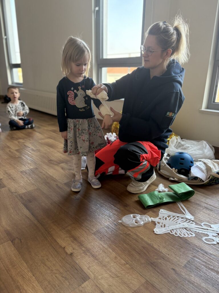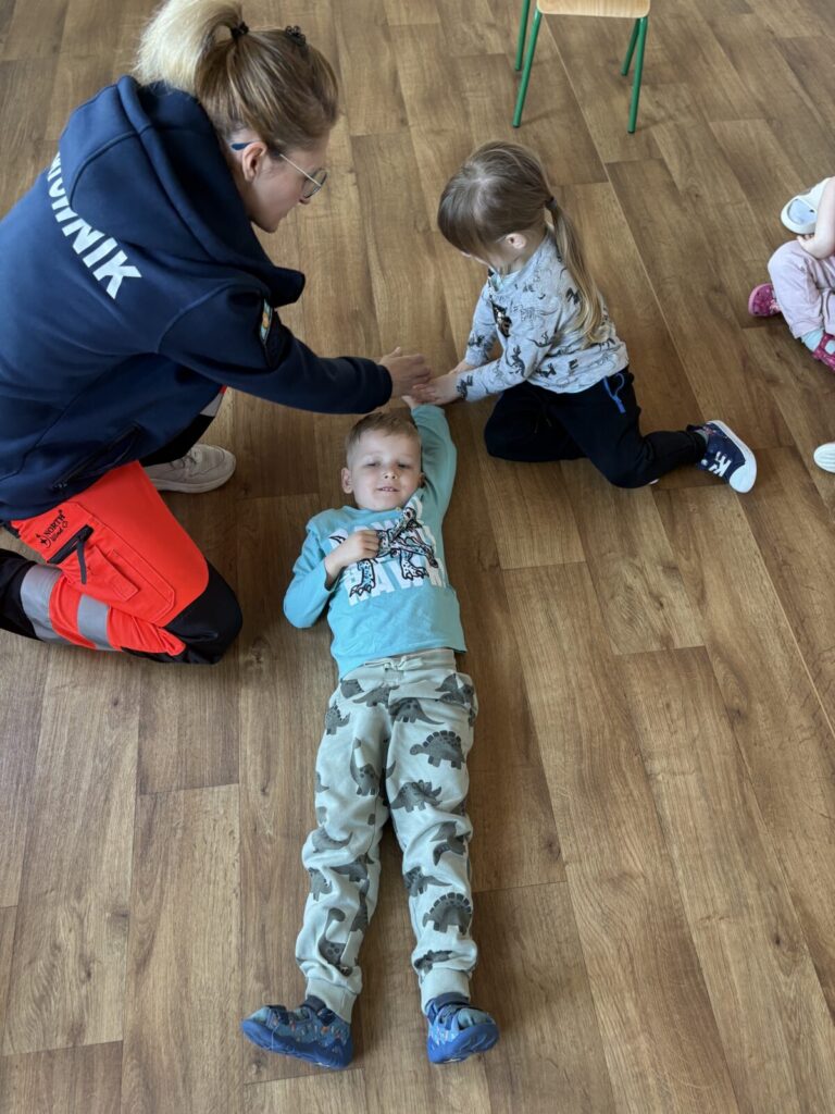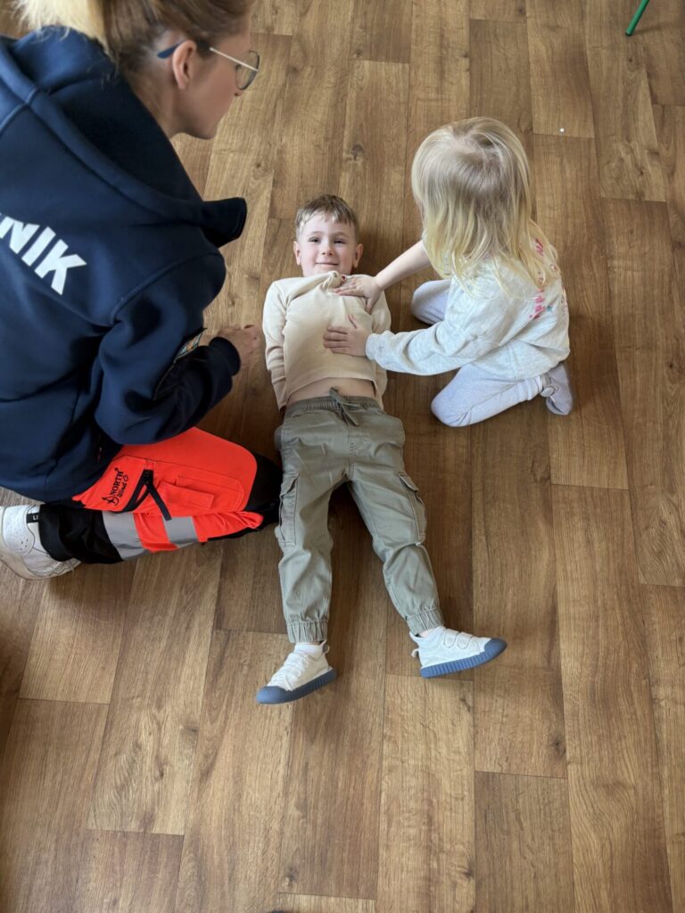 W naszym przedszkolu odbyły się warsztaty z pierwszej pomocy, podczas których dzieci w przystępny i bezpieczny sposób poznawały podstawowe zasady reagowania w sytuacjach zagrożenia.