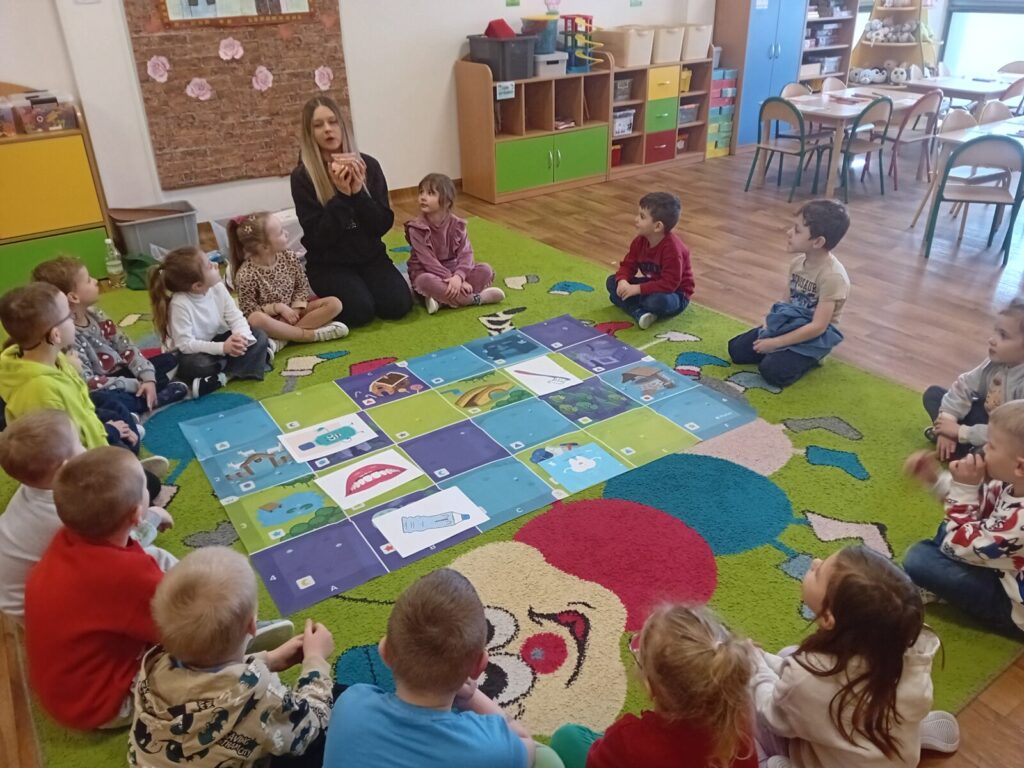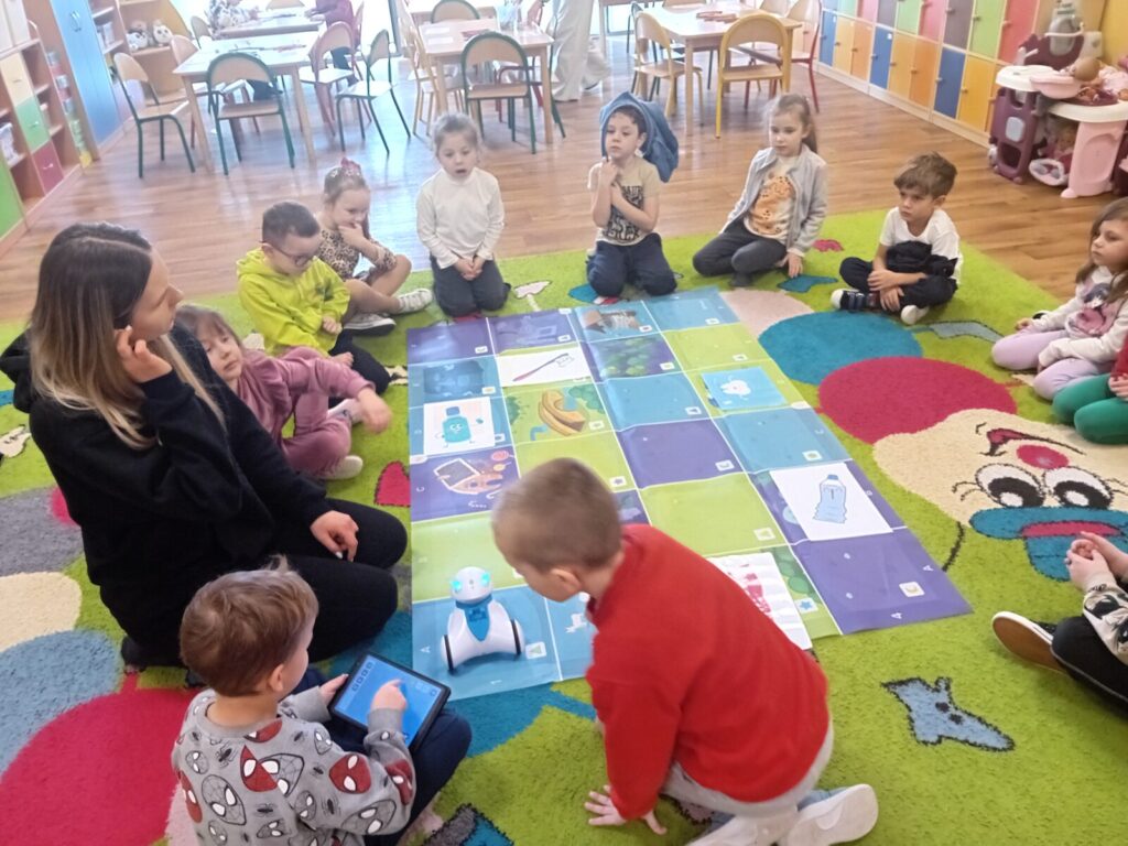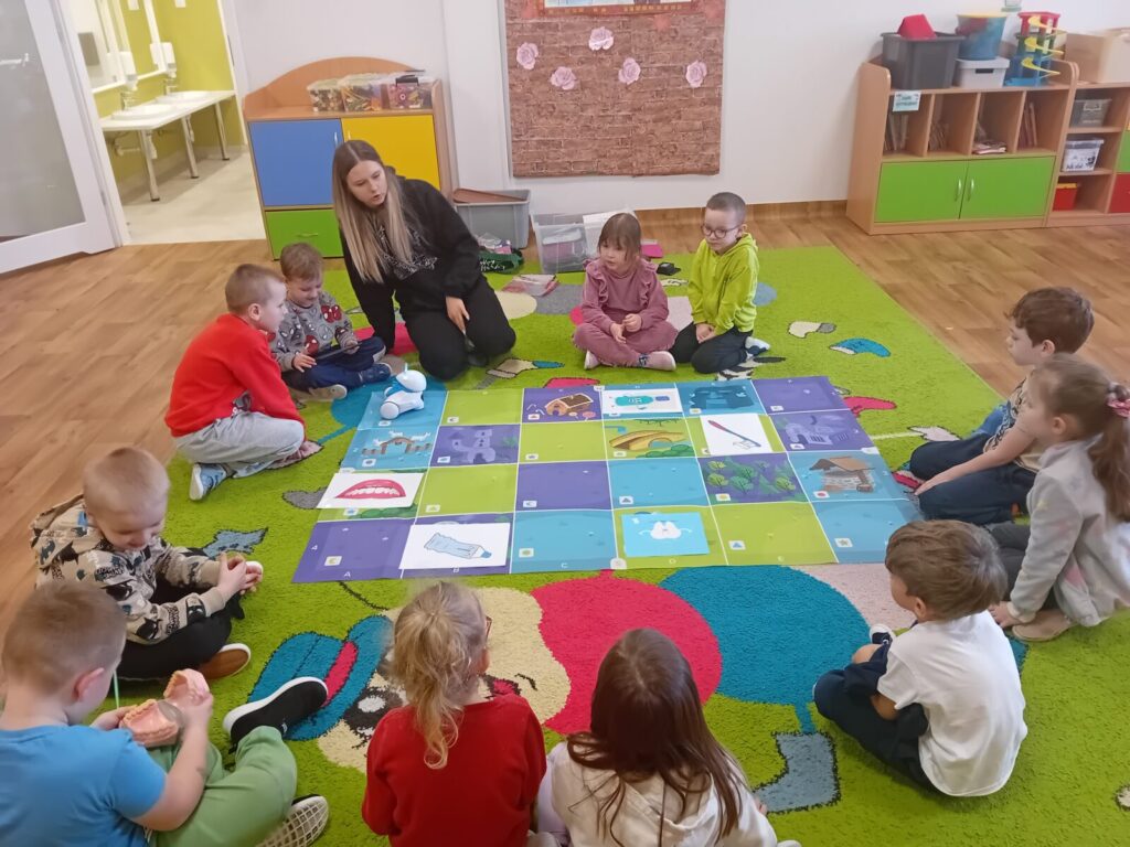 Galeria zdjęć przedstawia dzieci podczas udziału w warsztatach z kodowania. Przedszkolaki utrwalały zasady higieny jamy ustnej.
