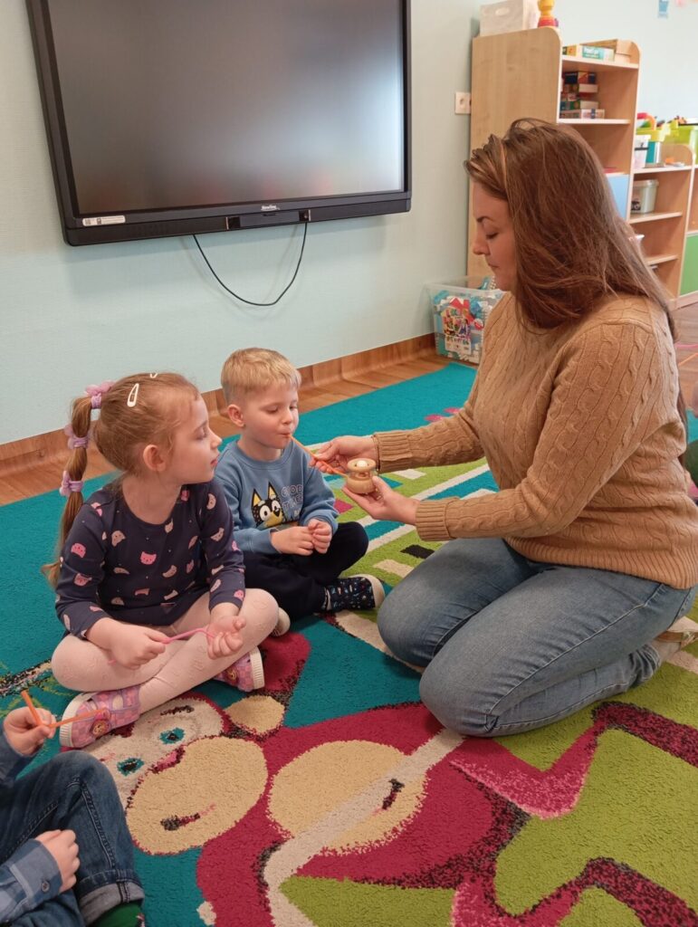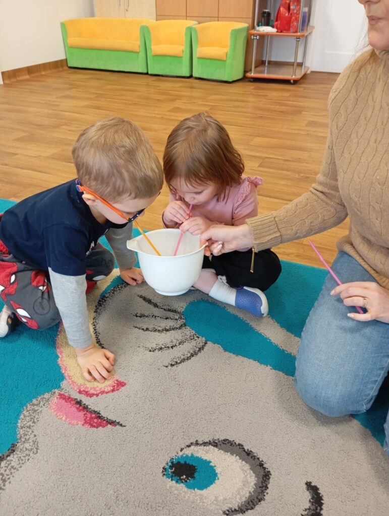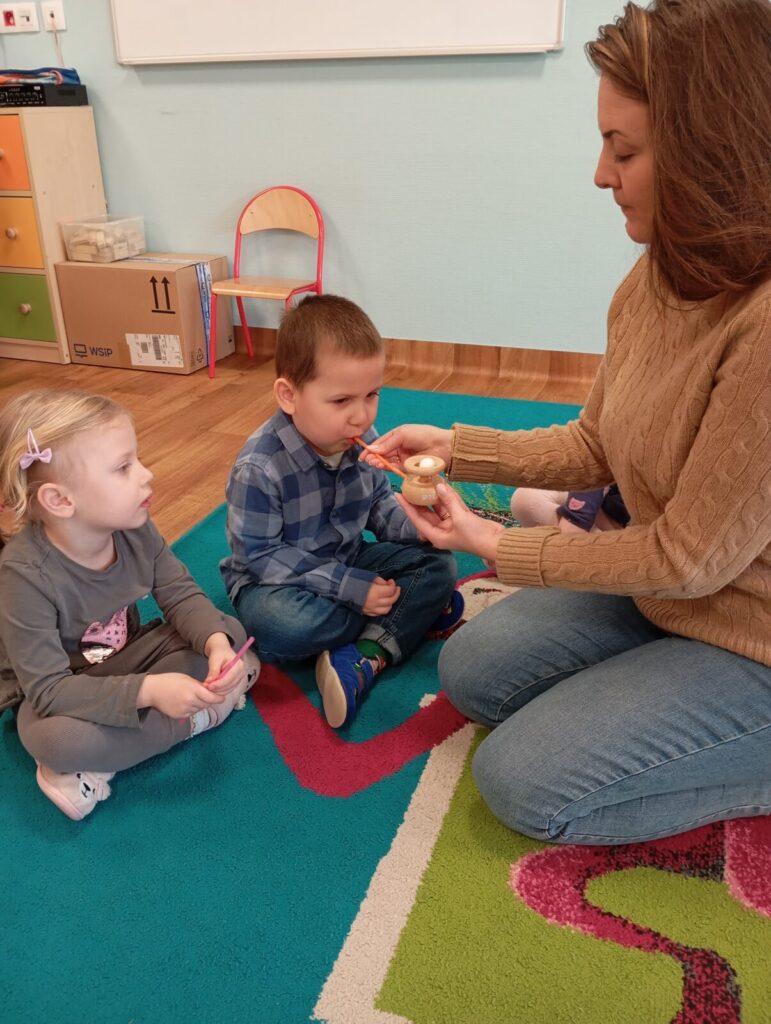 Zajęcia logopedyczne u Naukowców 19 marca 2026 przez przedszkole Zdjęcia przedstawiają dzieci podczas cyklicznych zajęć logopedycznych.