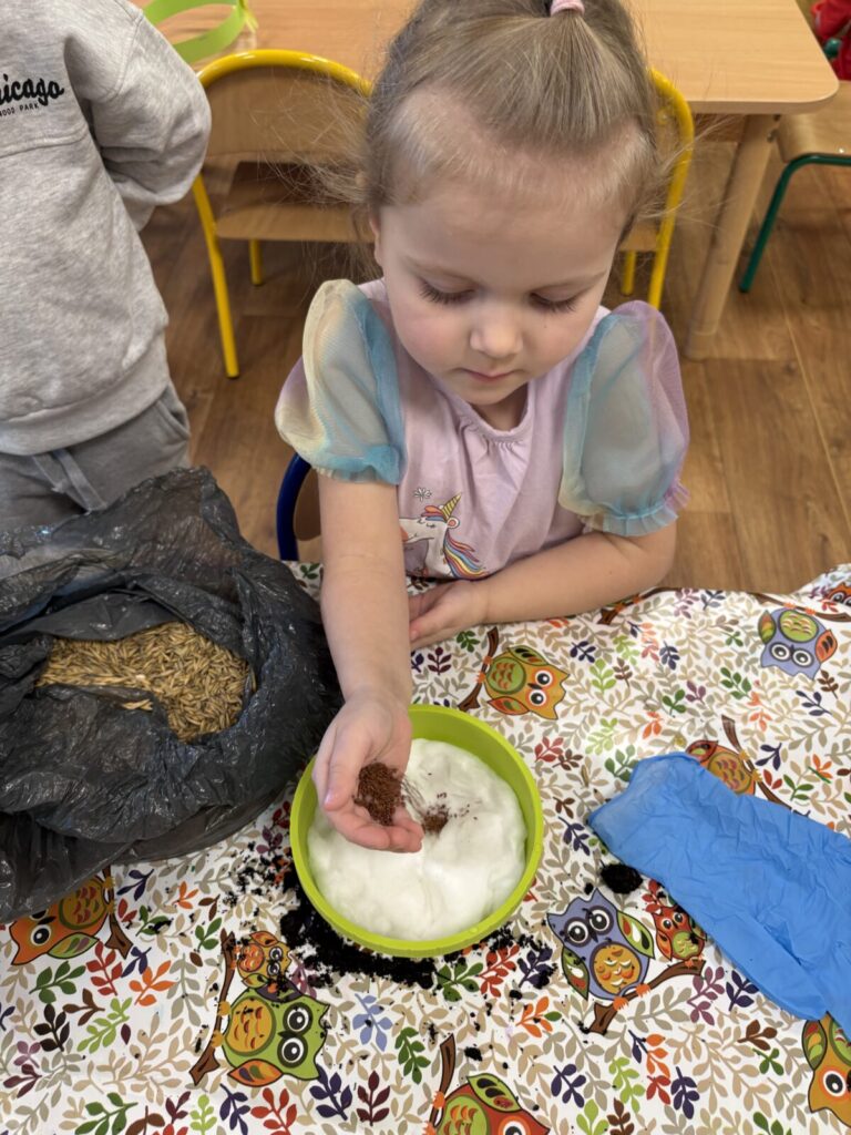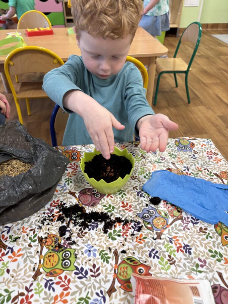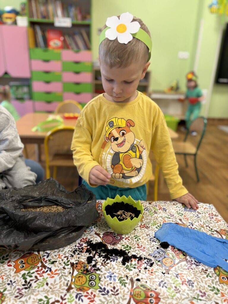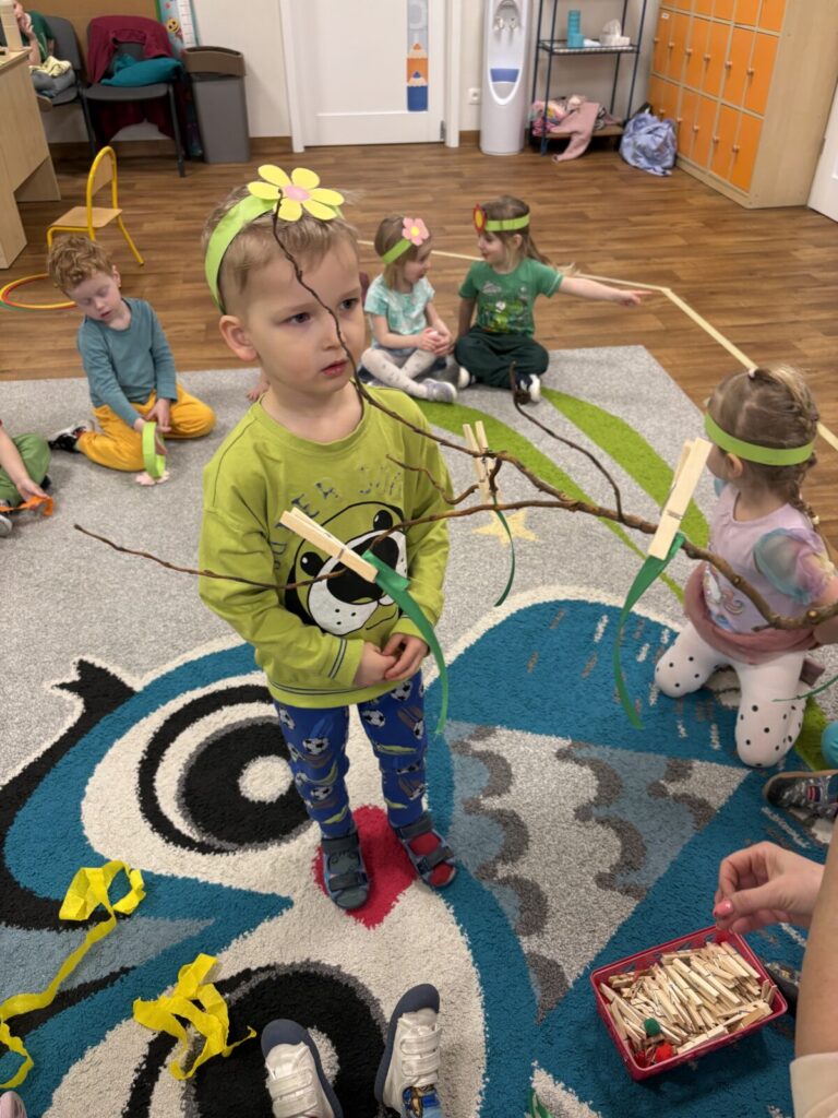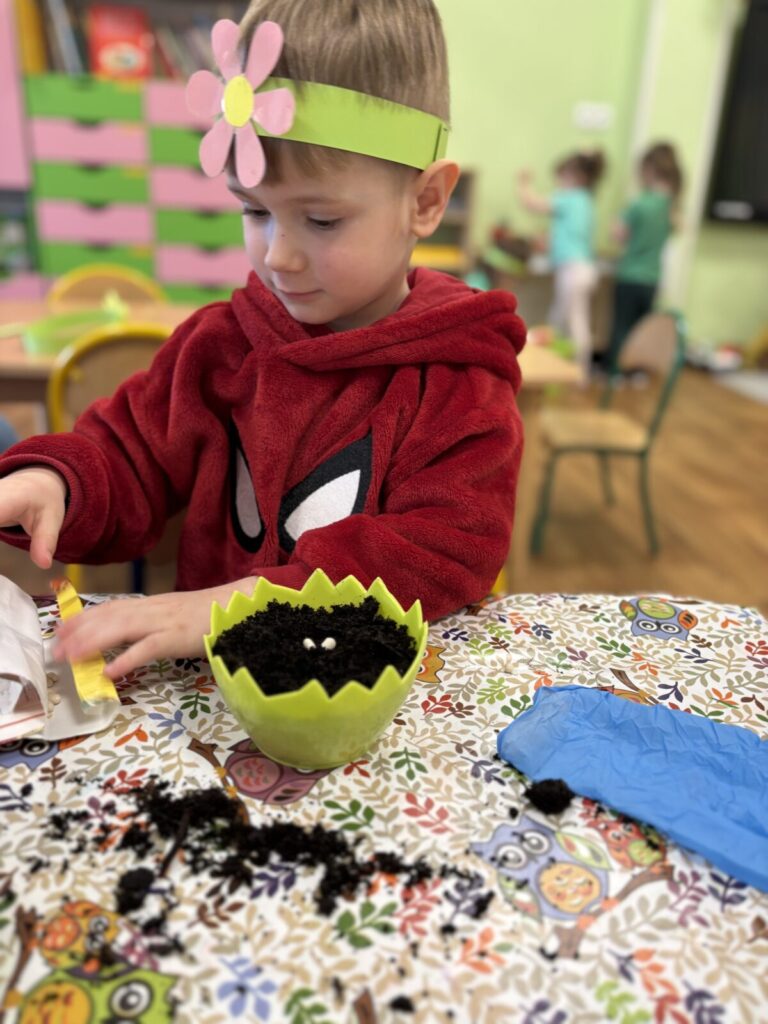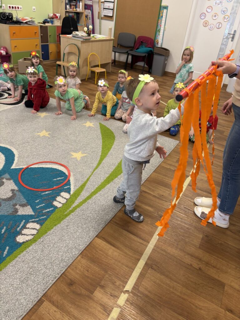 Pierwszy Dzień Wiosny świętowaliśmy radośnie i kolorowo. Dzieci brały udział w wiosennych zabawach, wspólnych tańcach oraz kreatywnych aktywnościach, tj. sadzenie roślin.