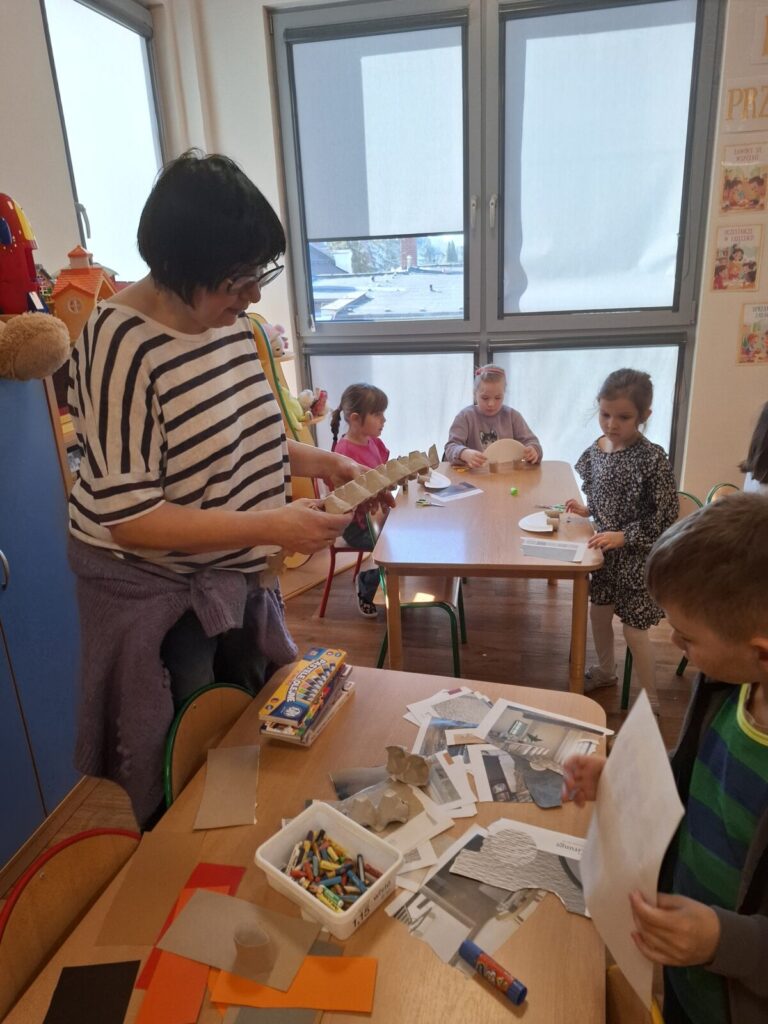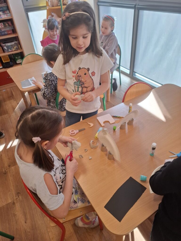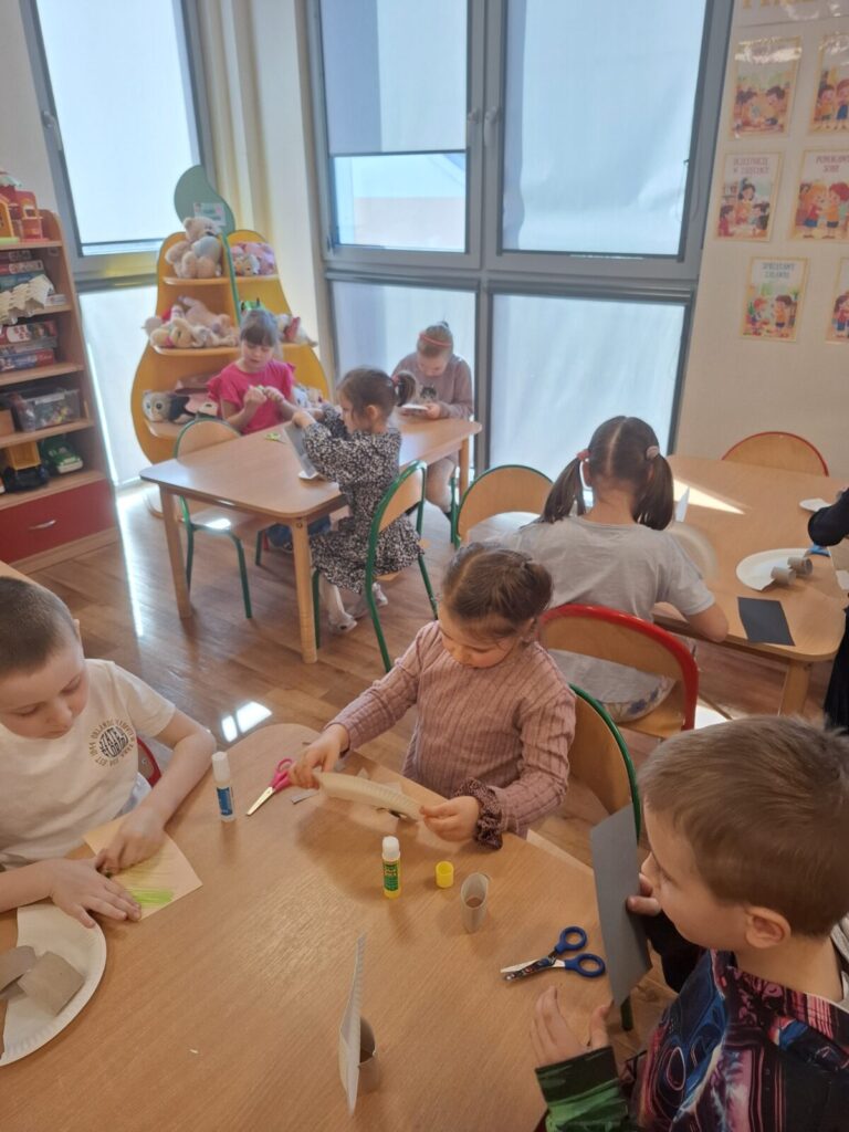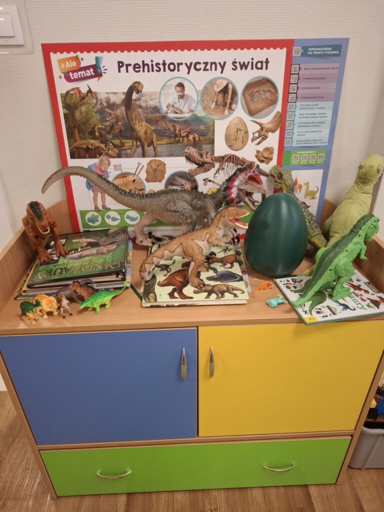 Dzień dinozaura 24 marca 2026 przez przedszkole Galeria zdjęć przedstawia przedszkolaki które uczestniczą w zajęciach o dinozaurach.