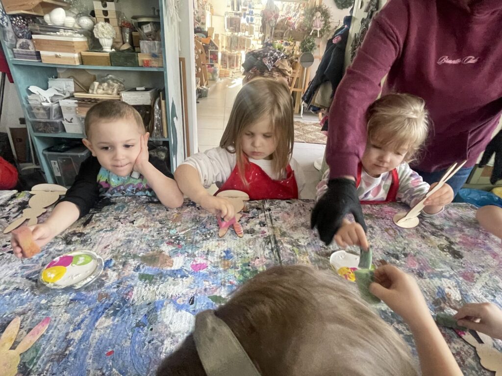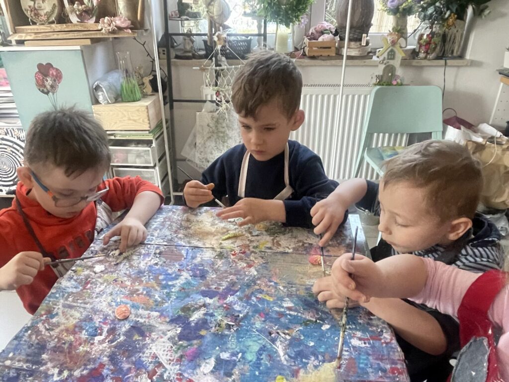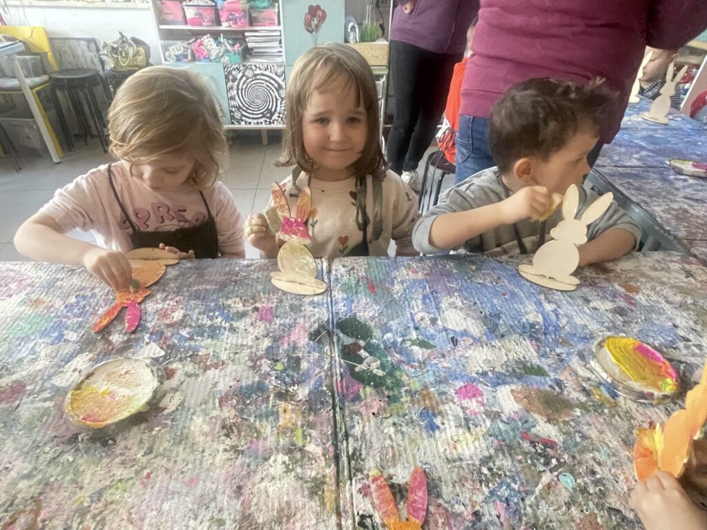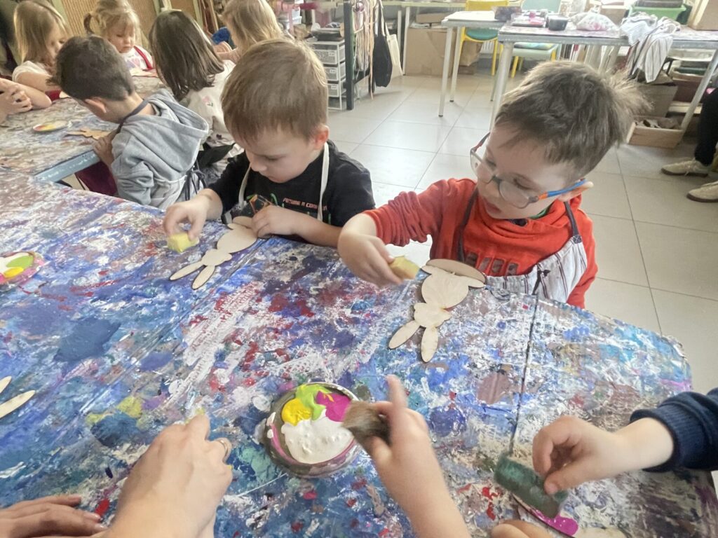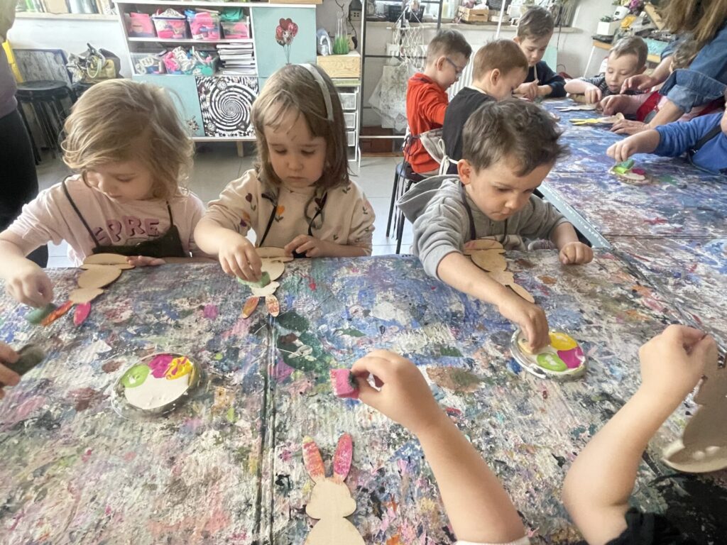Bell Pastel 25 marca 2026 przez przedszkole Galeria zdjęć przedstawia dzieci podczas wielkanocnych warsztatów plastycznych.