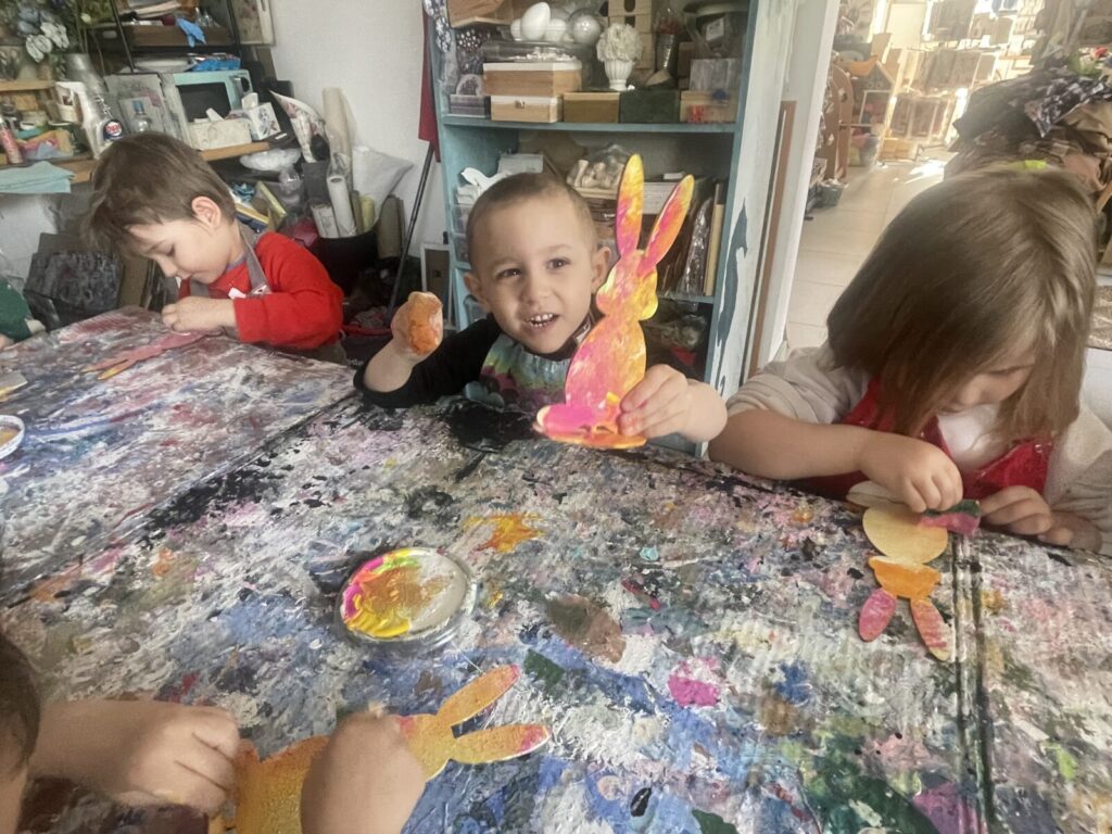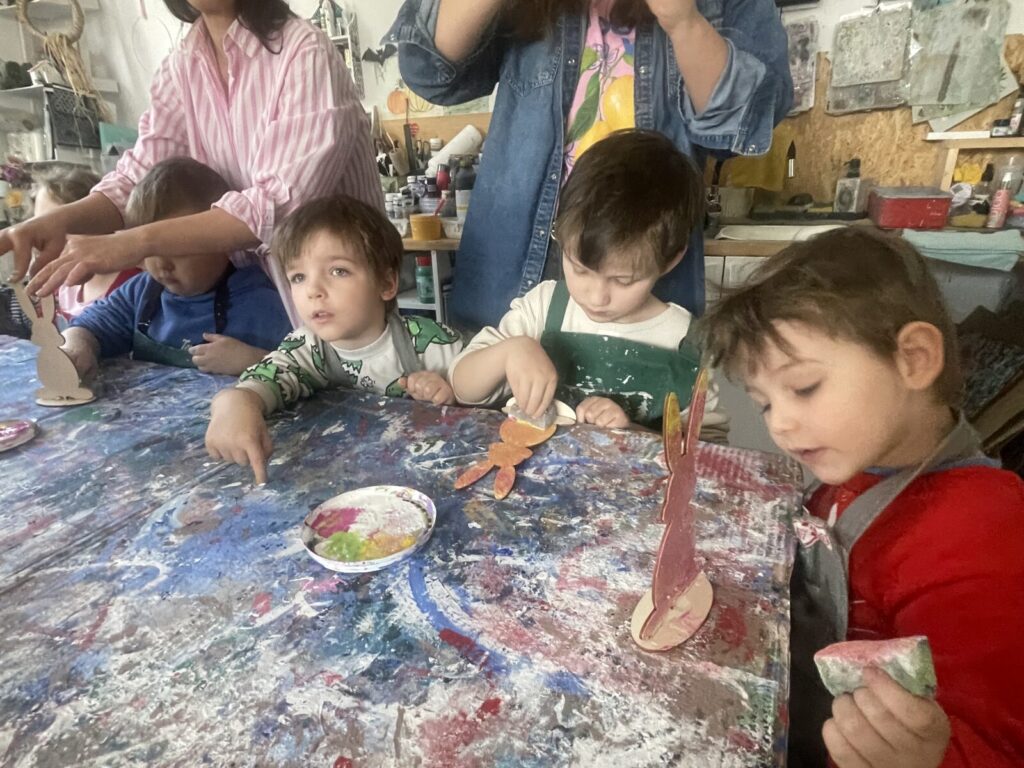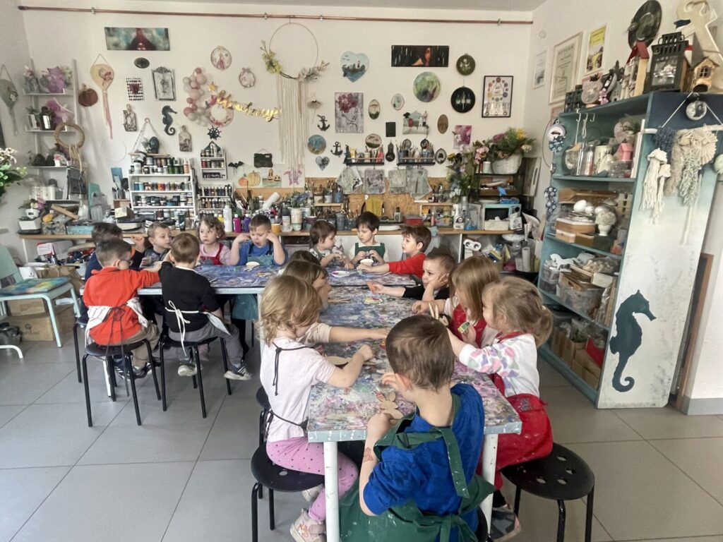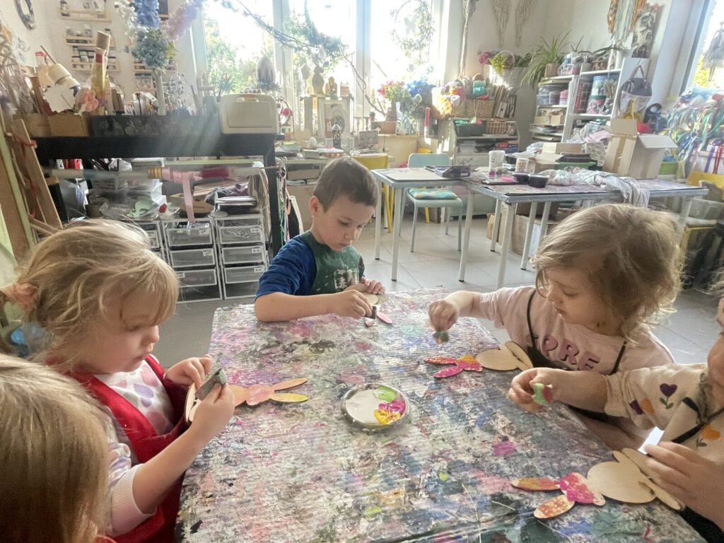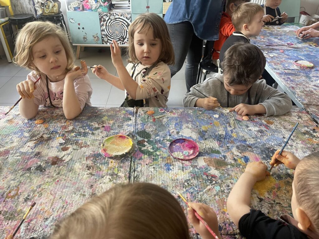 Bell Pastel 25 marca 2026 przez przedszkole Galeria zdjęć przedstawia dzieci podczas wielkanocnych warsztatów plastycznych.