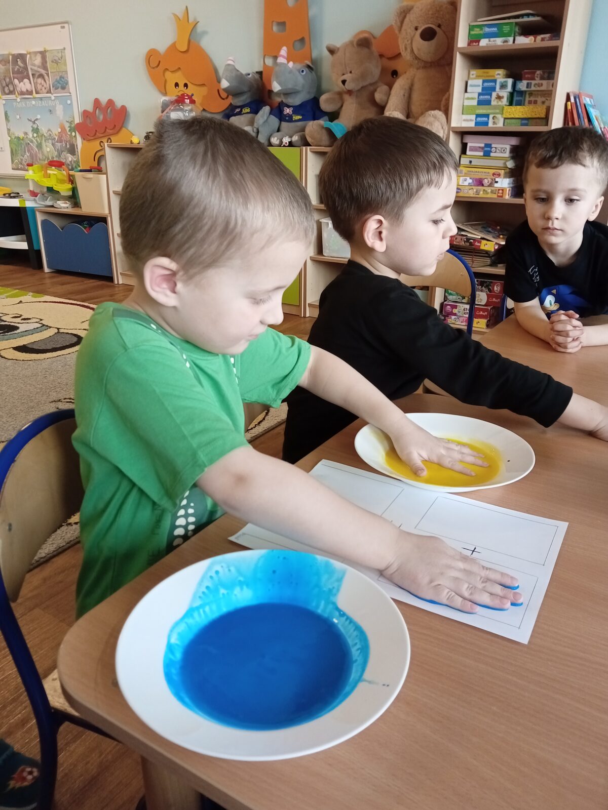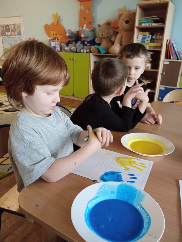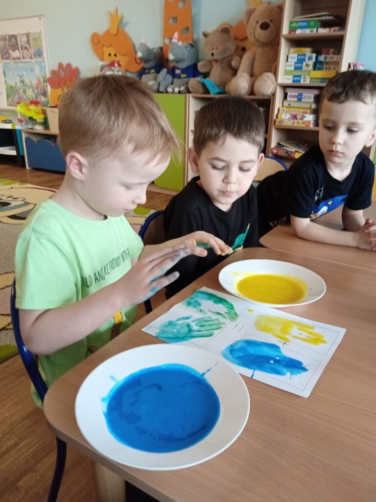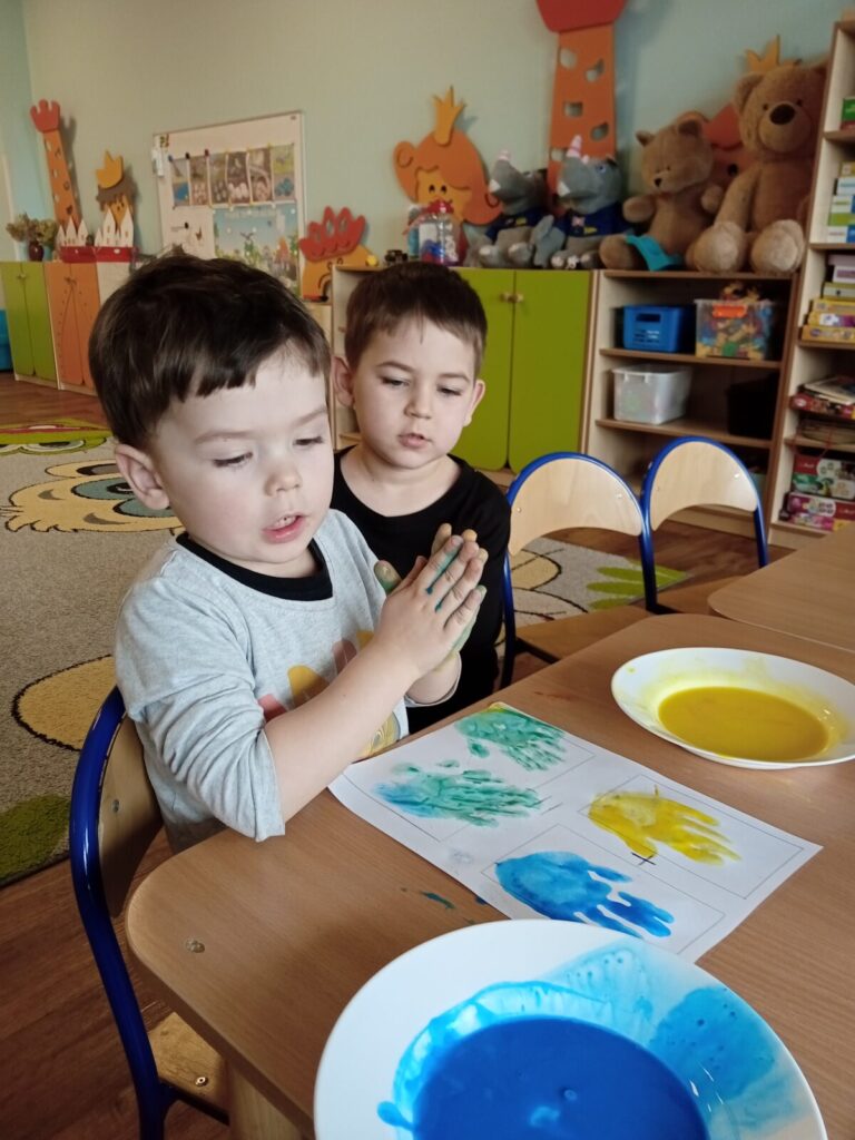 Tajemnicze kolory-zabawa badawcza 2 kwietnia 2026 przez przedszkole Galeria zdjęć przedstawia dzieci podczas zabawy badawczej.
