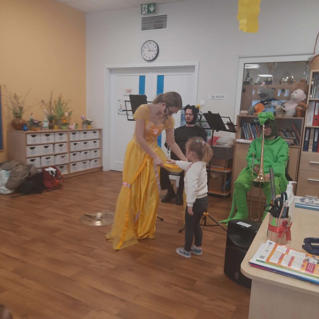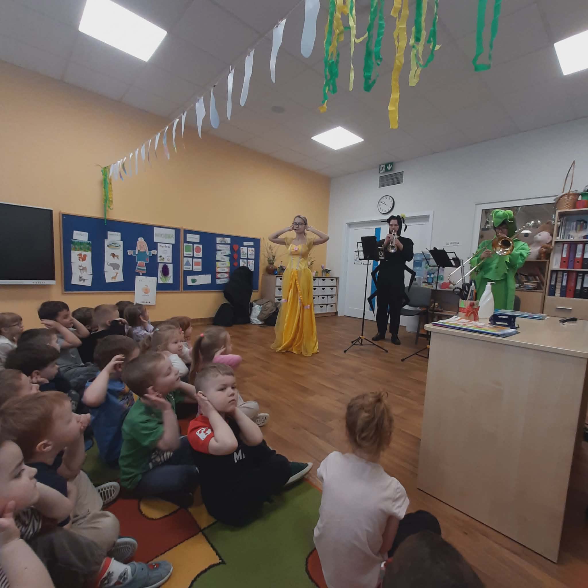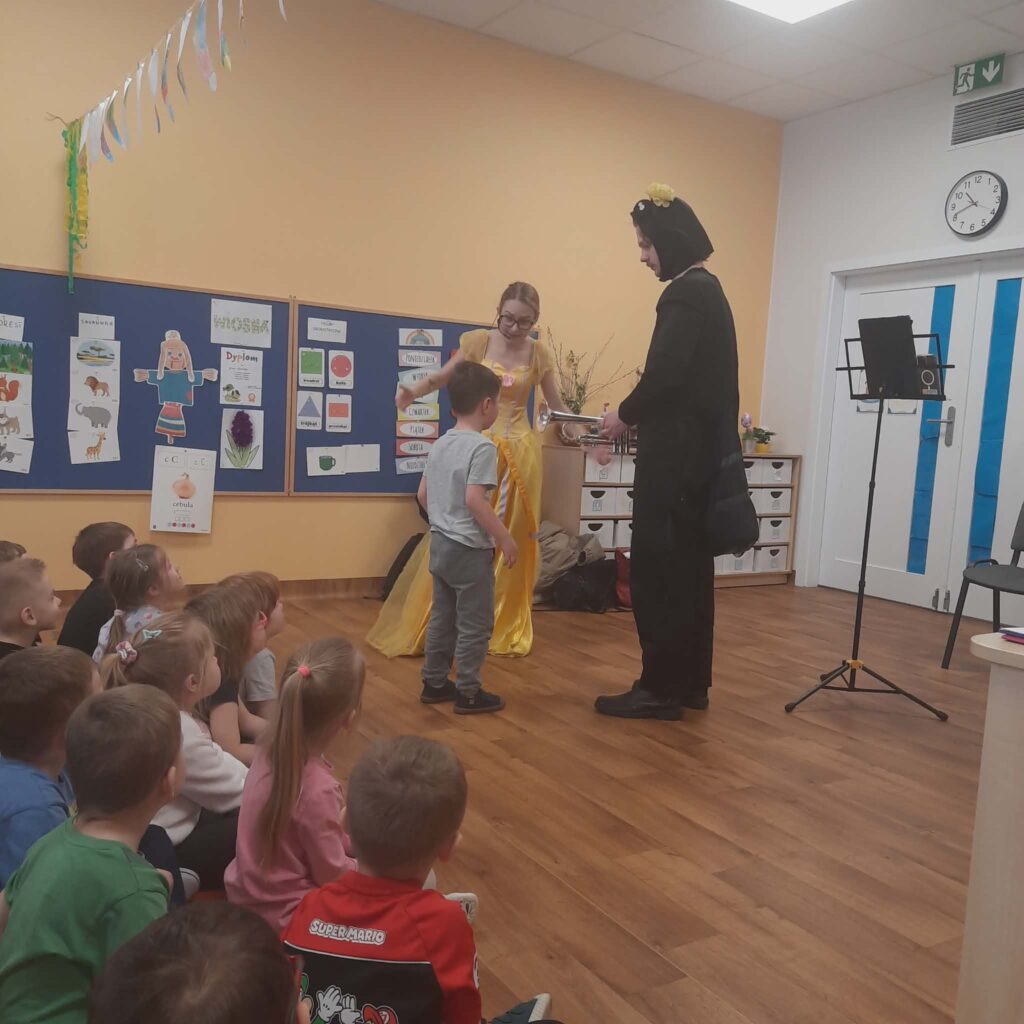 Koncert muzyczny pt. „Wiosenne porządki i kraina owadów” 3 kwietnia 2026 przez przedszkole Galeria zdjęć przedstawia dzieci podczas koncertu muzycznego.