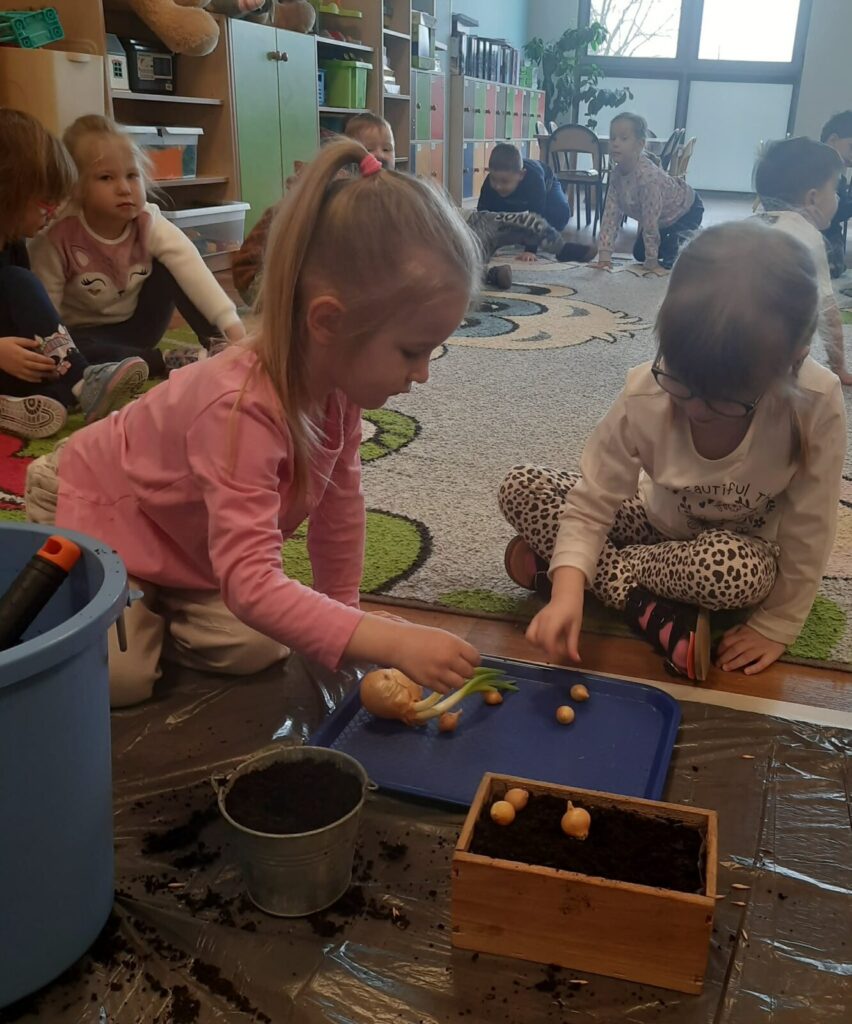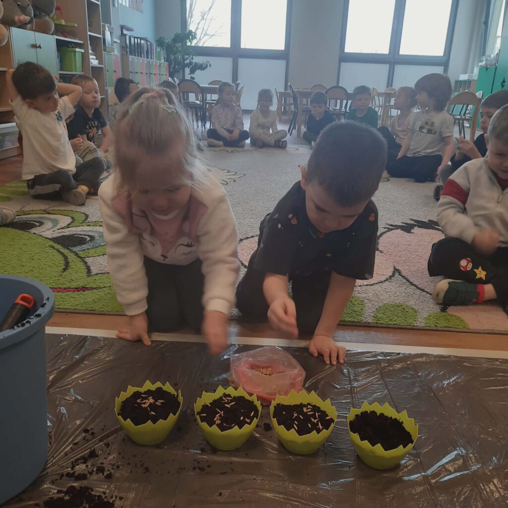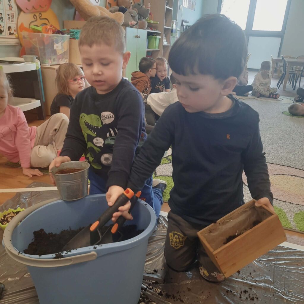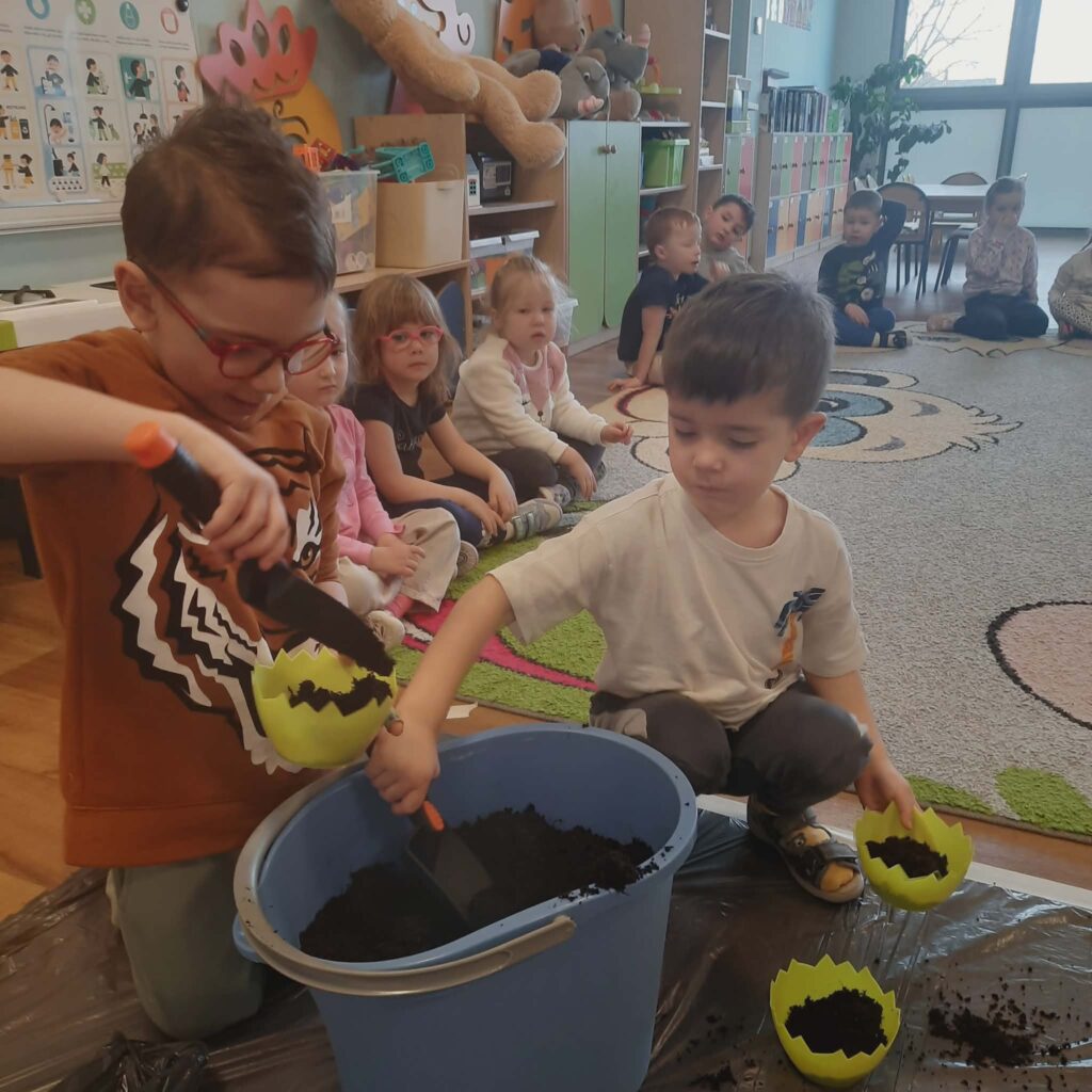 „Sadzimy-siejemy”-zabawa gospodarcza, założenie upraw. 3 kwietnia 2026 przez przedszkole Galeria zdjęć przedstawia dzieci podczas zabawy gospodarczej.