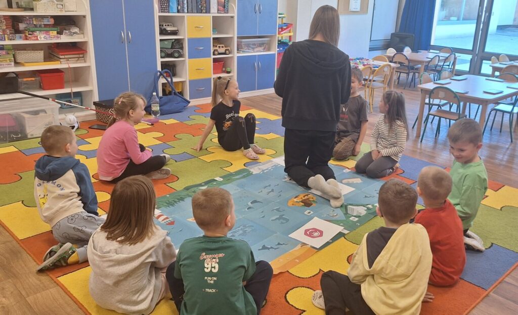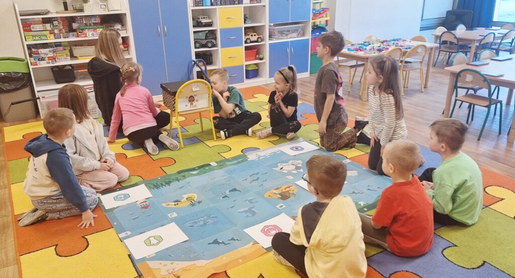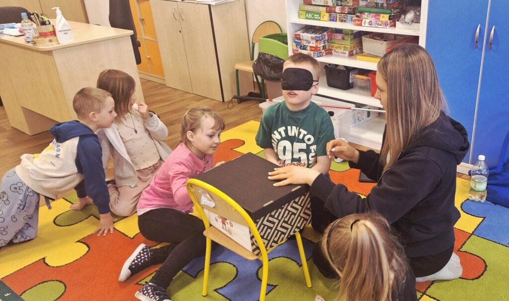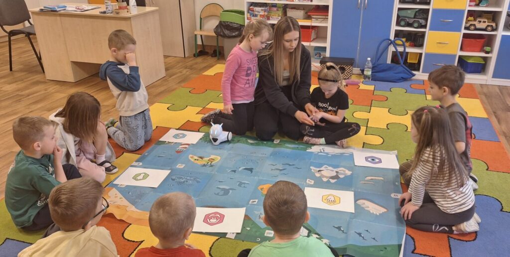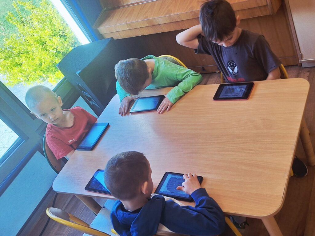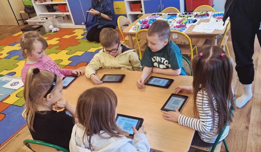 WARSZTATY Z KODOWANIA- ,,POZNAJEMY ZMYSŁY” 3 kwietnia 2026 przez przedszkole Galeria zdjęć przedstawia przedszkolaki uczestniczące w warsztatach z kodowania. Dzieci utrwalały wiedzę o zmysłach.
