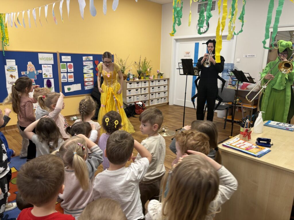 Bajkonutki-koncert o ekologii 12 kwietnia 2026 przez przedszkole Dzieci uczestniczyły w koncercie, podczas którego dowiedziały się, jak mogą dbać o las.