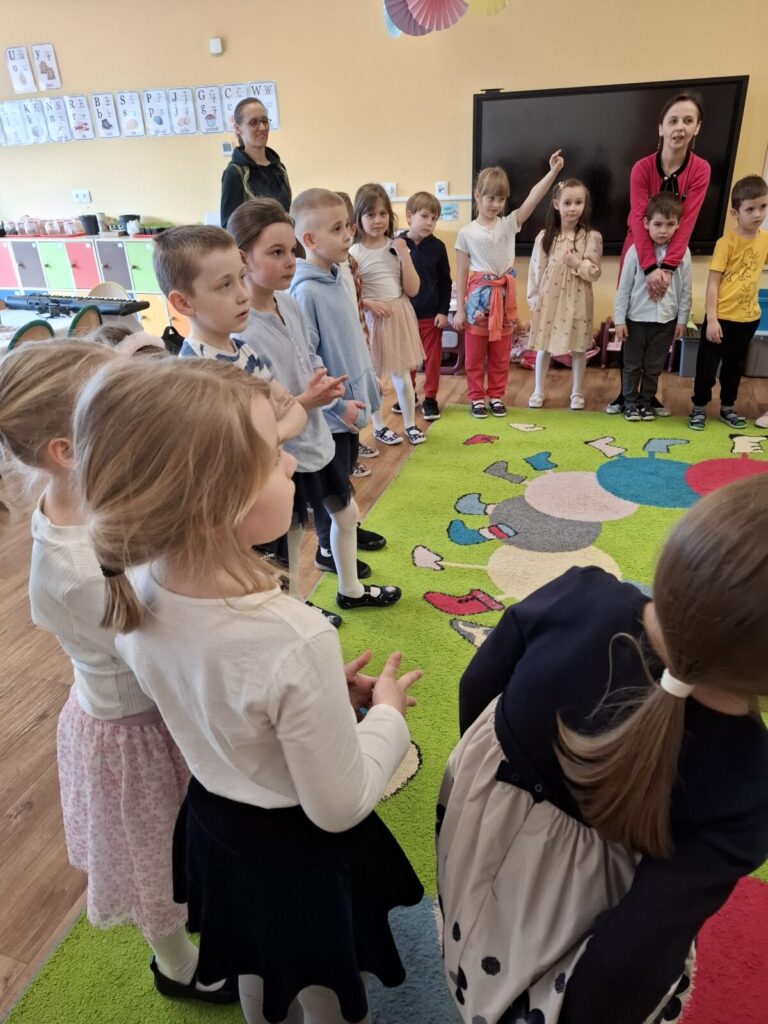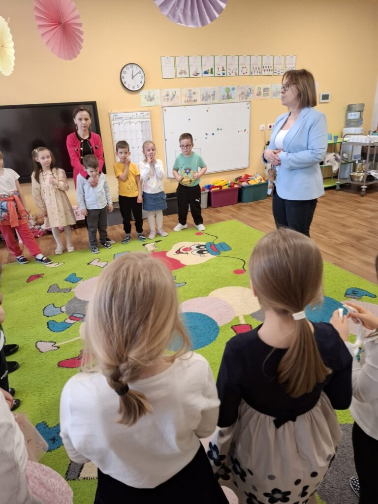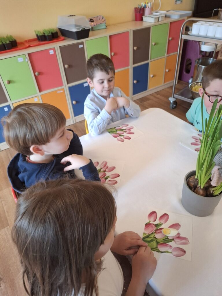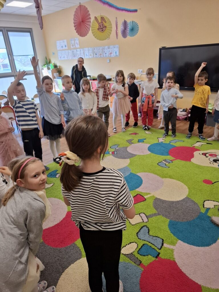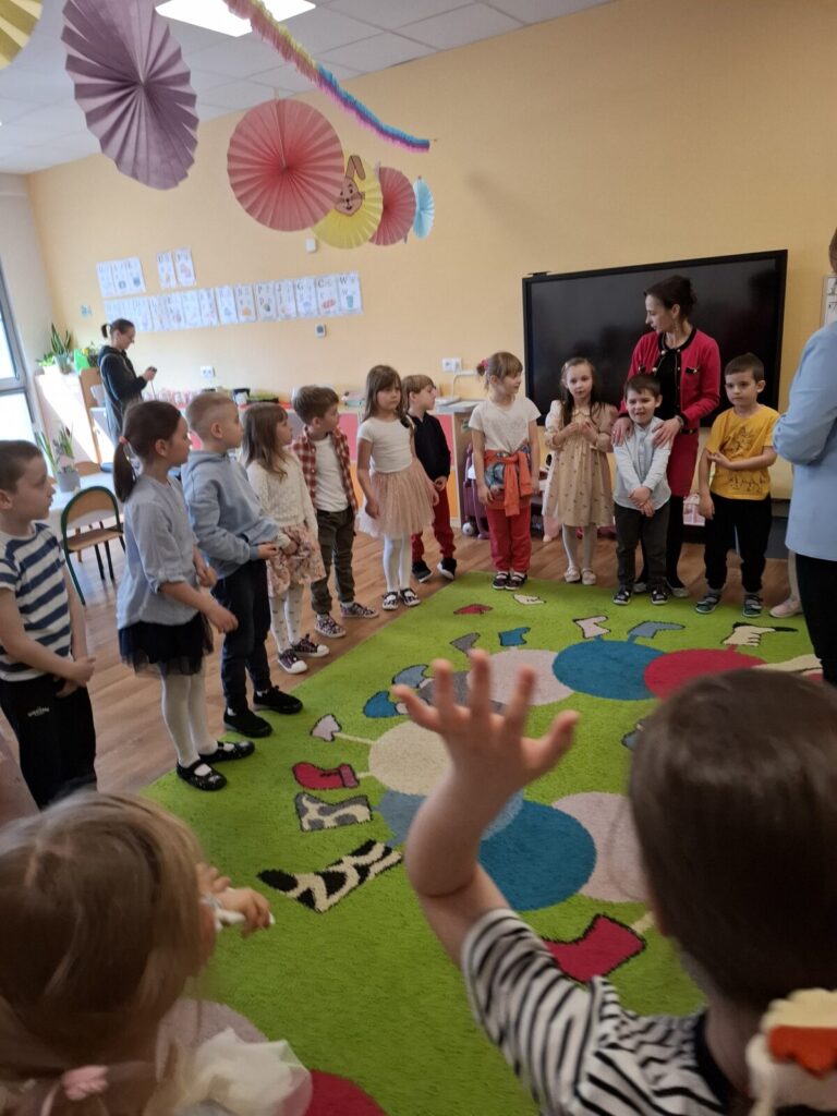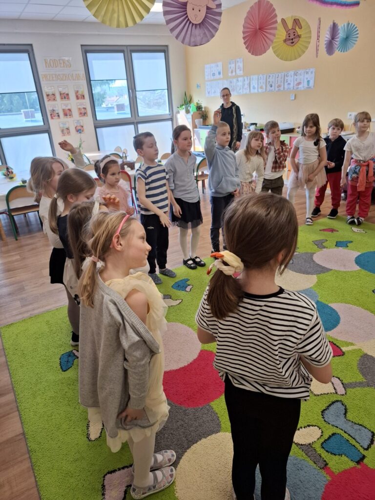 Uroczysty obiad wielkanocny 27 kwietnia 2026 przez przedszkole Galeria zdjęć przedstawia dzieci podczas obiadu wielkanocnego.