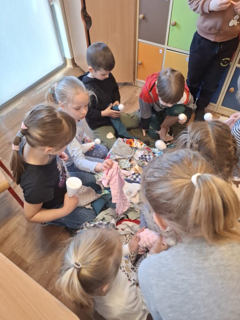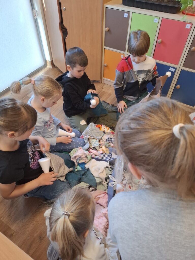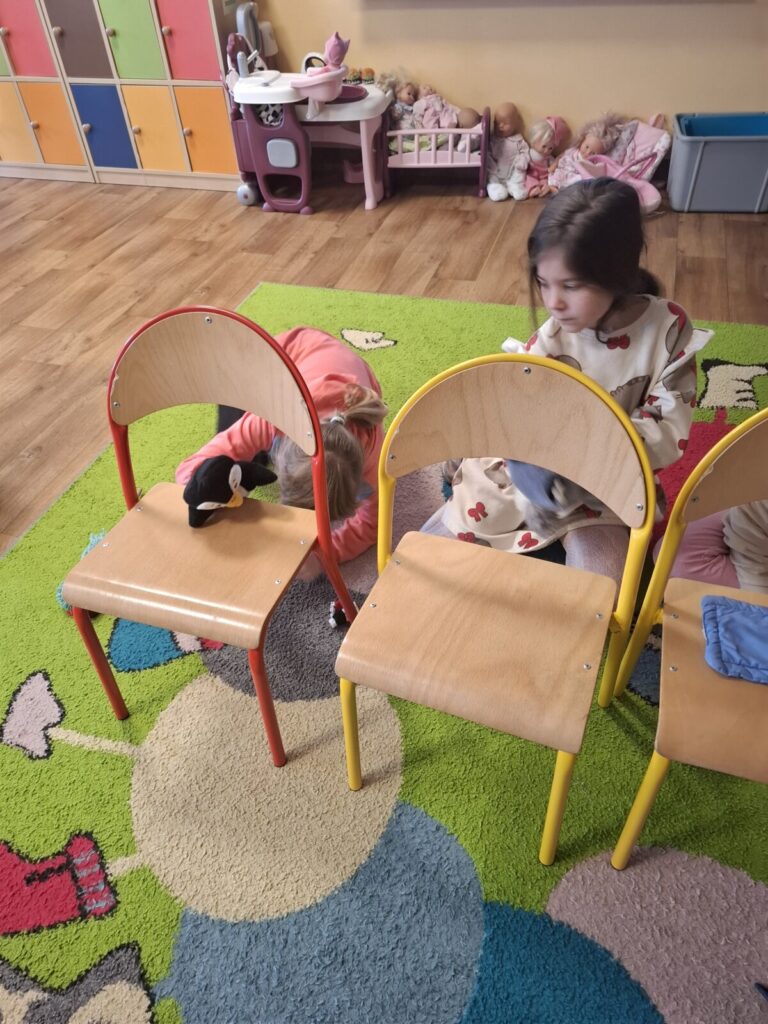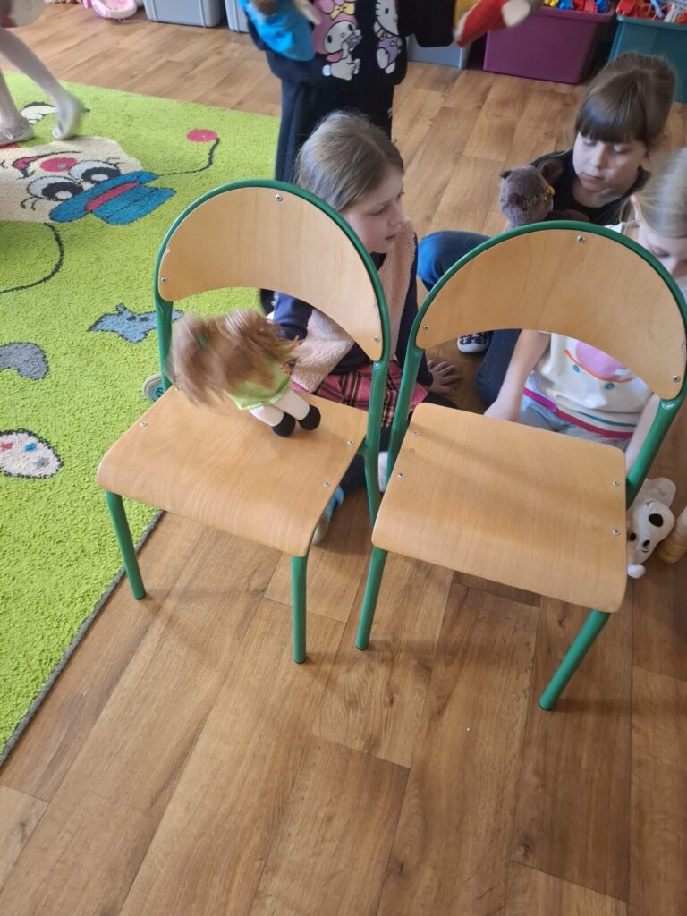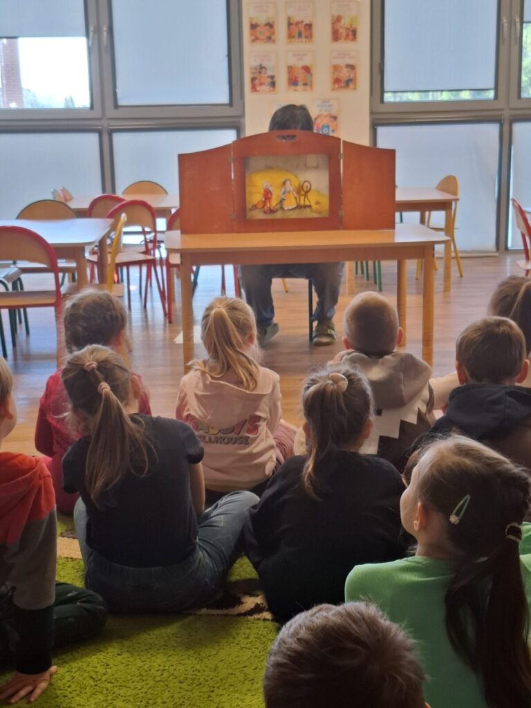 Zabawa w teatr. 27 kwietnia 2026 przez przedszkole Galeria zdjęć przedstawia przedstawia przedszkolaki biorące udział w cyklu zajęć o filmie i teatrze.