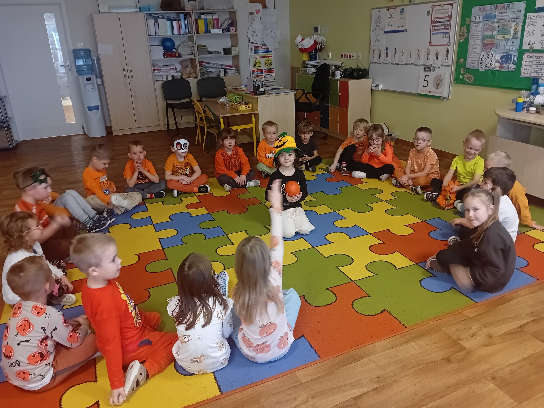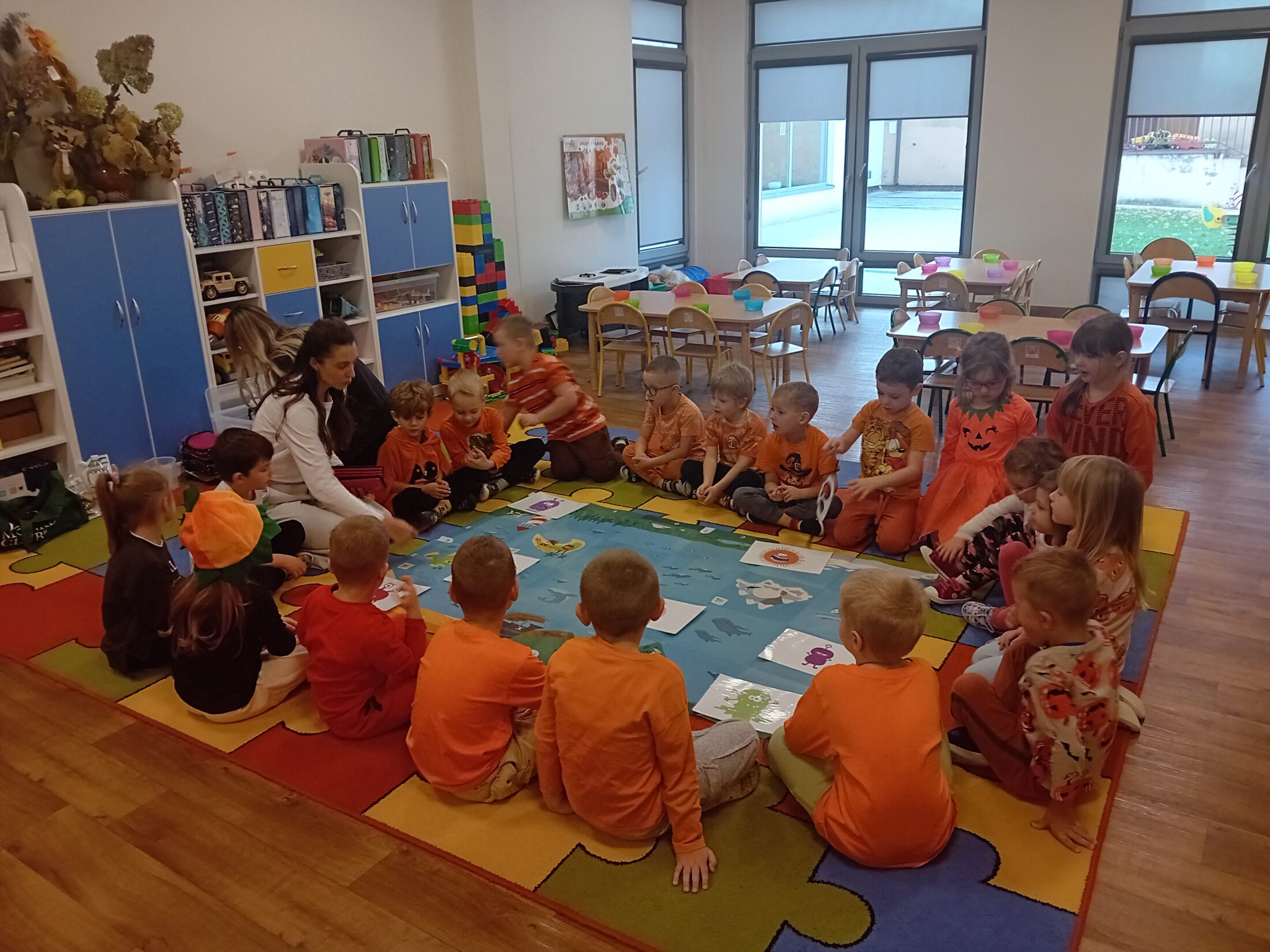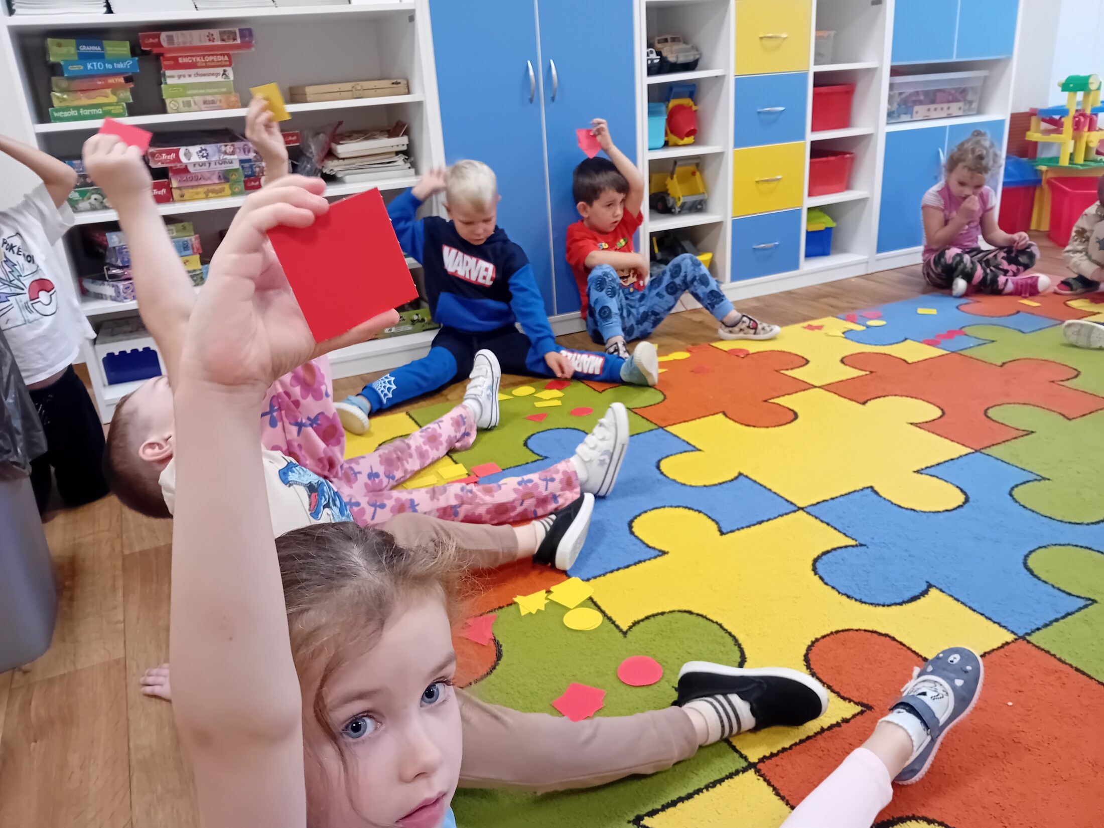 Galeria zdjęć przedstawia dzieci podczas zajęć z programu Dwujęzyczny przedszkolak, na których zapoznały się z nazwami figur geometrycznych w j.angielskim: circle- koło, triangle- trójkąt, rectangle- prostokąt, sģuare- kwadrat. Podczas słuchania … Dowiedz się więcej