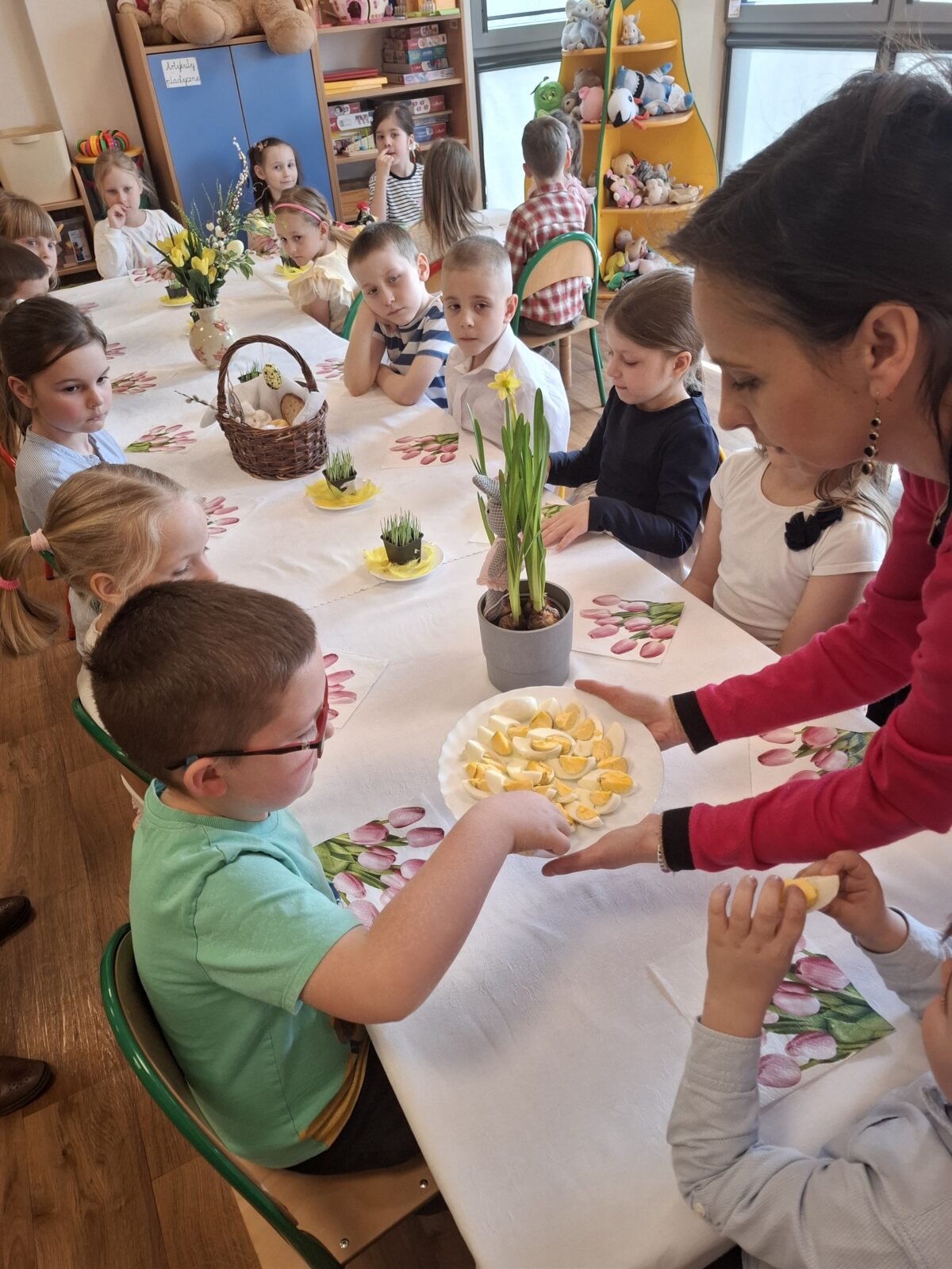 W przedszkolu odbył się obiad wielkanocny, będący częścią świątecznych obchodów i wspólnego celebrowania tradycji.