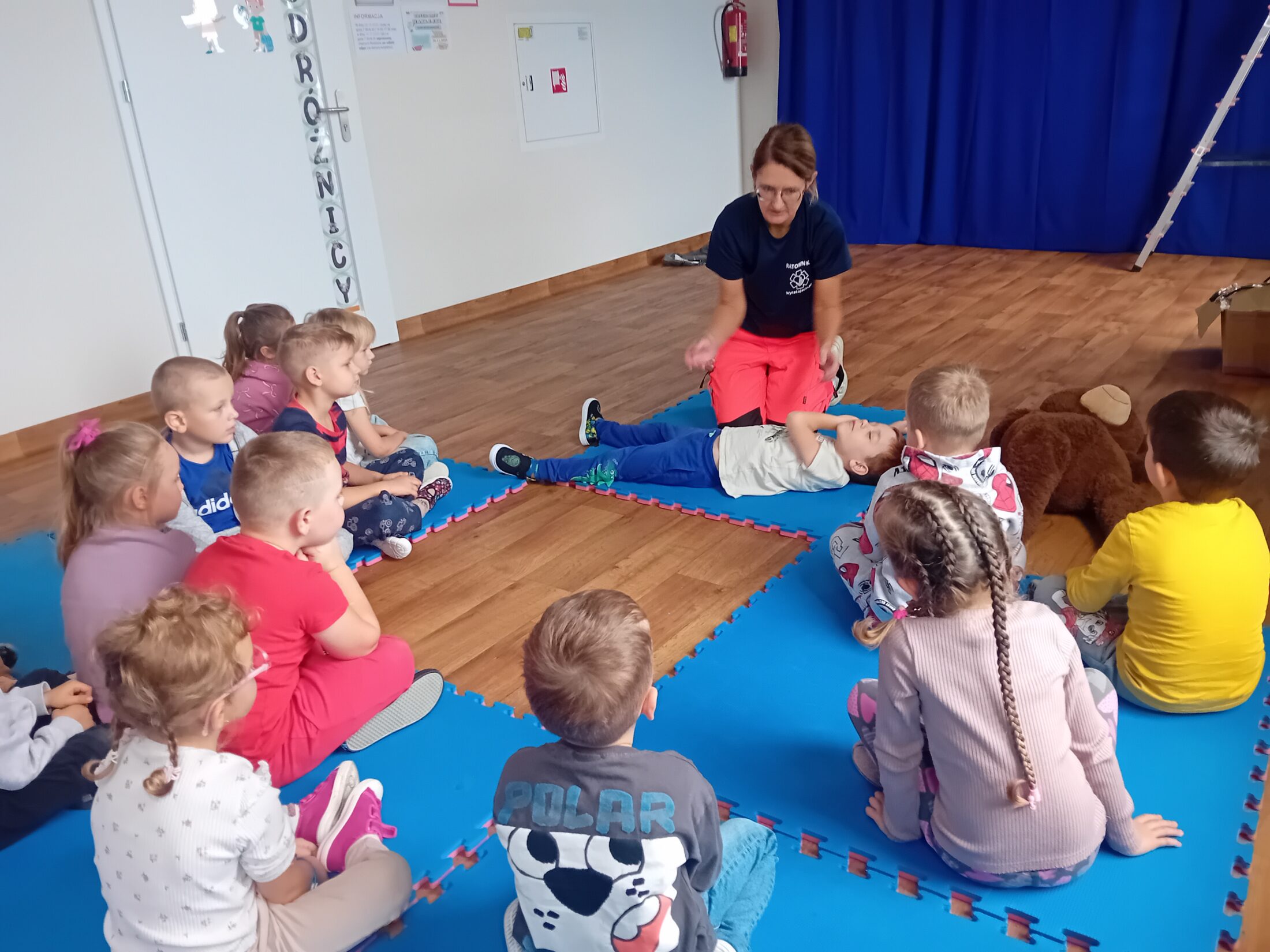 Galeria zdjęć przedstawia dzieci uczestniczące w warsztatach nt udzielania pierwszej pomocy medycznej.