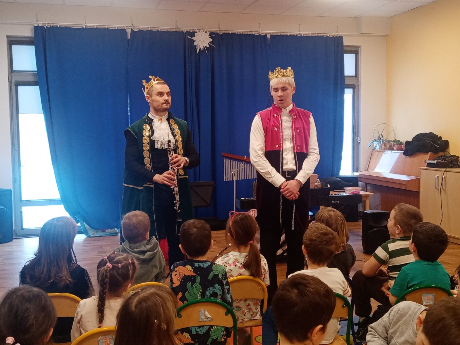 Galeria zdjęć przedstawia dzieci podczas oglądania koncertu muzycznego Bajkonutki.